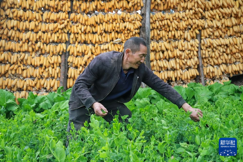 11月24日,金口河区同心村村民王联均在采摘豌豆尖。新华社发(黎艳摄)