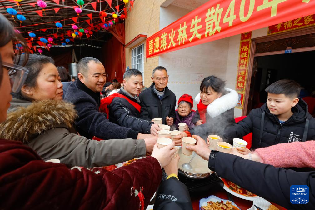 新华社成都2月2日电(记者吴光于、杨进、沈伯韩)2月2日,恰逢农历小年,在四川省绵阳市三台县金石镇新安村,迎接失散40年亲人回家的鞭炮从村口放到了家门口,17桌“坝坝宴”坐满前来道贺的父老乡亲。