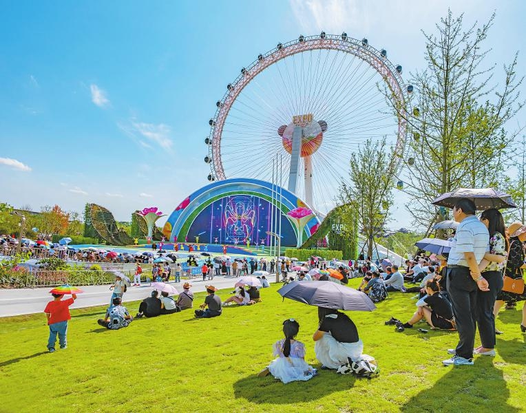 5月4日,成都艳阳高照,位于东部新区的成都世园会主会场游人如织。邓显杰 摄