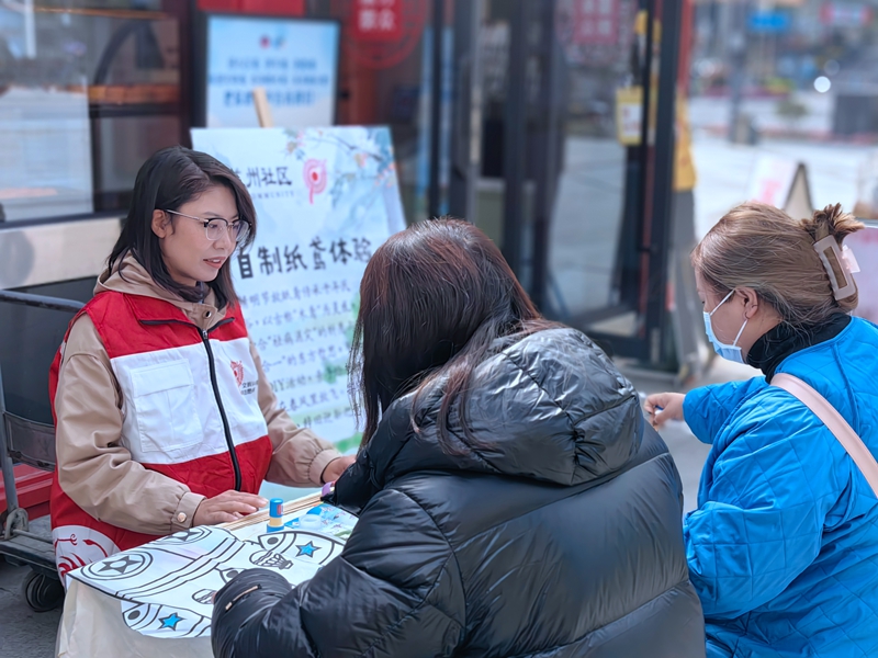 活动现场的非遗体验区成为当日的人气焦点。志愿者们指导参与者用各色纹样的布袋加上艾草、薄荷等材料制作中药香囊;纸鸢彩绘环节特别设置追思寄语书写区;投壶游戏区更是笑语不断。社区居民李先生感叹:“传统游戏不仅有趣,还拉近了邻里关系。”