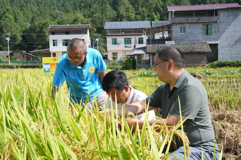 测产在苍溪县元坝镇金飞阳种植专业合作社的水稻高产示范田进行。专家通过丈量面积、收割脱粒、水分检测、称重计算等流程,确认该田块种植的“泰优粤禾丝苗”品种亩产较当地常规种植亩产提高45.54%。