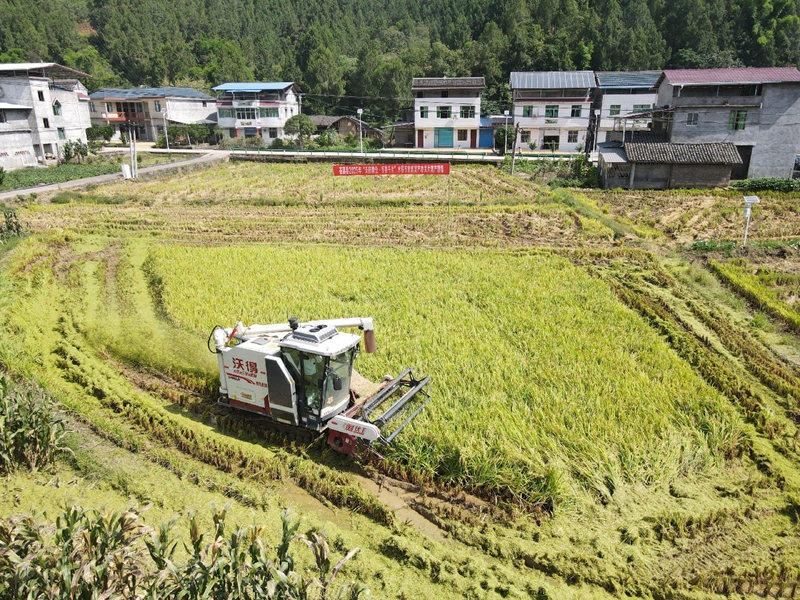 图为水稻收割现场。(苍溪县委宣传部 供图)
