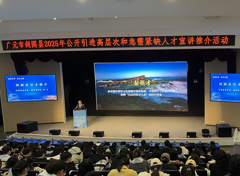 10月27日,四川省广元市剑阁县在西北大学举办“2025年公开引进高层次和急需紧缺人才专场宣讲推介会”,活动以“剑贤思齐 龙凤来阁”为主题,向高校学子推介剑阁的发展机遇、人才政策和人文魅力,吸引众多青年学子关注。