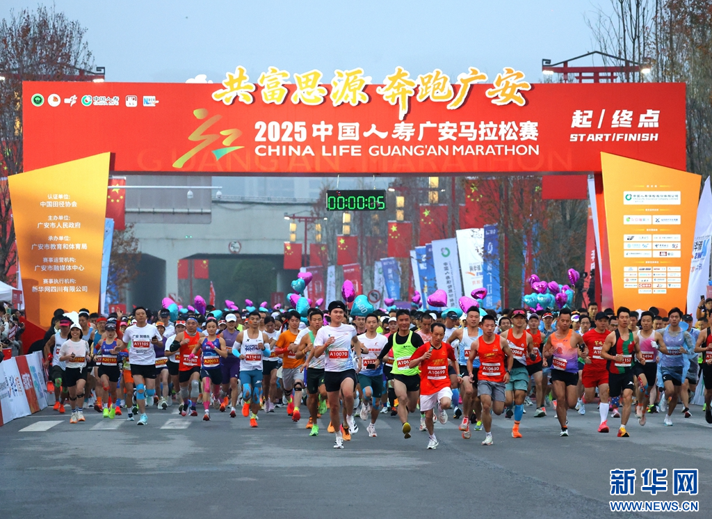 2025广安马拉松赛起跑瞬间。新华网发(曹鹏 摄)