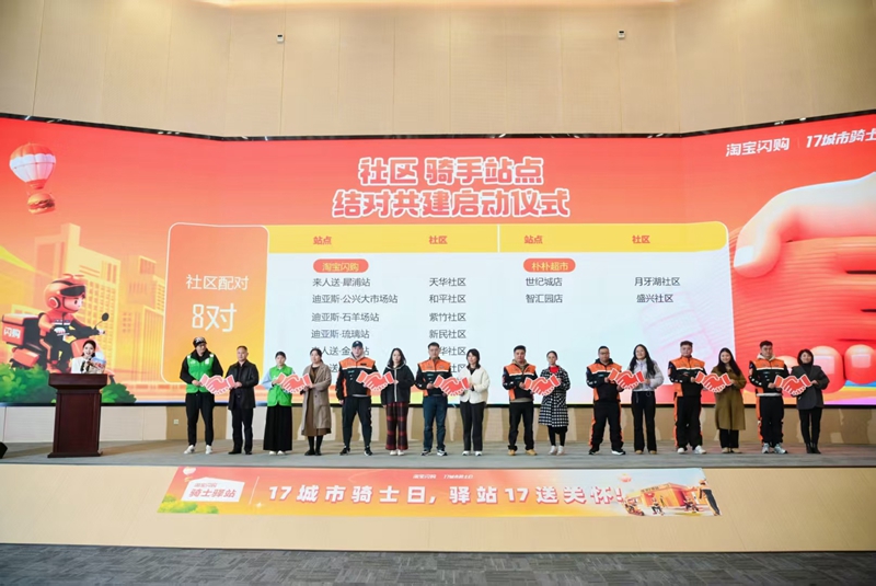 在“党建引领共建共治”环节,淘宝闪购、朴朴超市等平台站点代表与属地社区签署共建协议并结对,双方将围绕“服务阵地共建、风险防控共抓、治理力量共育”展开深度合作,推动骑手从“治理对象”转变为“治理力量”,发挥其“流动探头”作用,实现组织优势与基层治理效能的双向转化。
